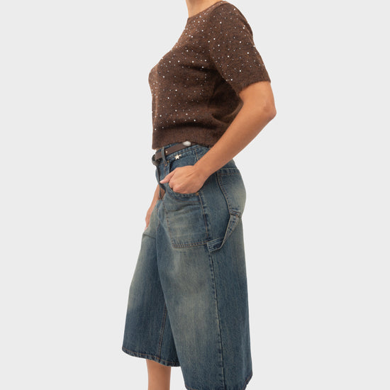 In store we take the actual measurements of the garments and share them with you, so you can buy safely.