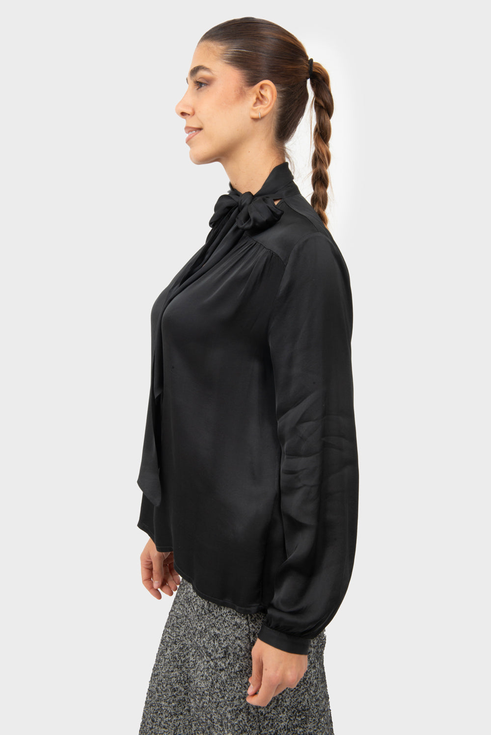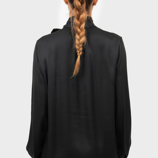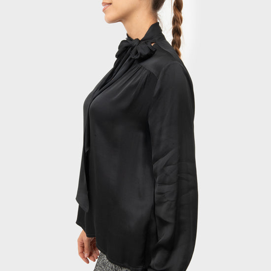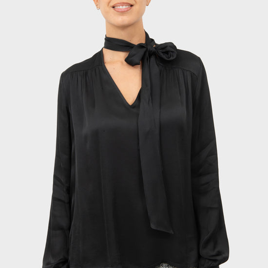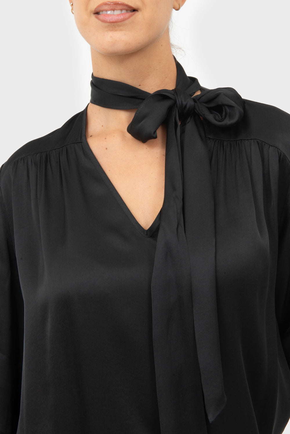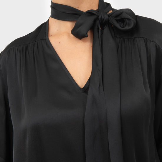 Blusa scollo a V con foulard al collo.