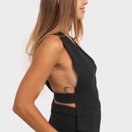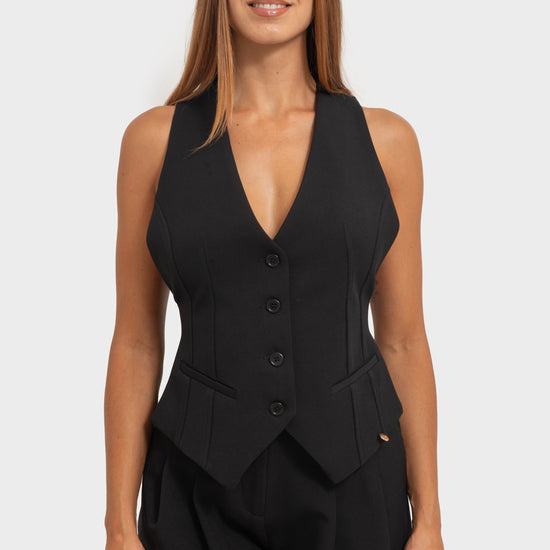 Gilet con bottoni sul fronte ed elastico sul retro.