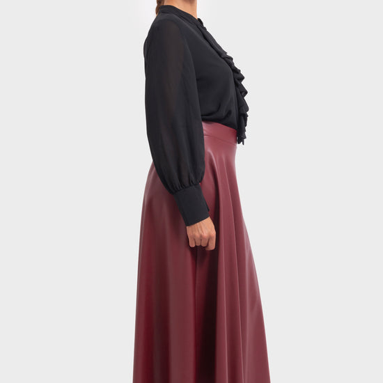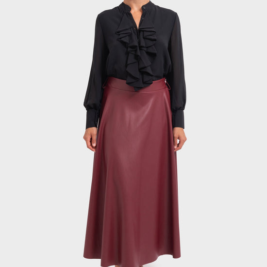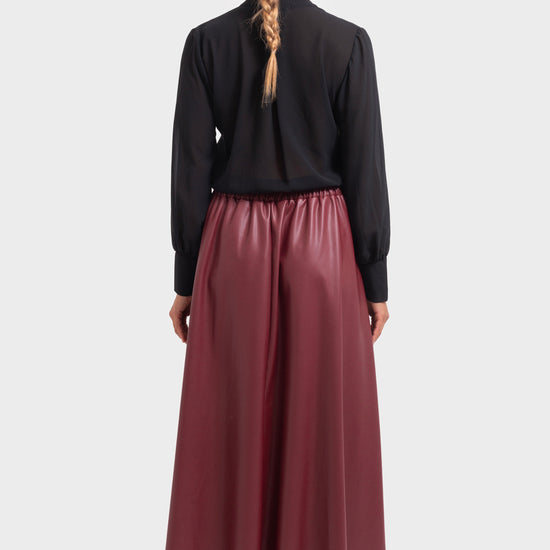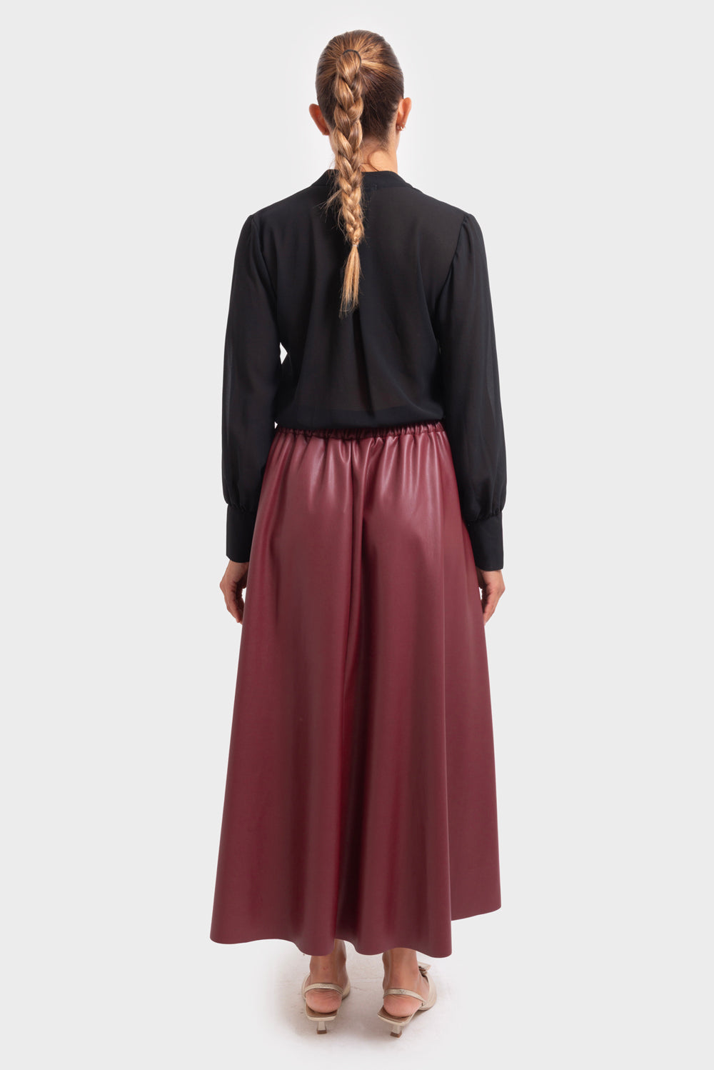 Gonna lunga a ruota in ecopelle, elastico sul retro.